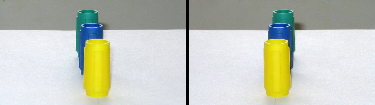 Si vous avez des difficultés à percevoir la 3DAvant de voir des films en 3D vous pouvez vous entraîner sur les images suivantes : Le cercle rouge doit être le plus éloigné et le jaune le plus proche. Si vous éprouvez de la difficulté à voir la 3D apparaître, changer votre distance à l'écran de façon à fusionner chaque paire de cercle de couleur. Une fois que vous êtes parvenu à voir les 3 cercles en 3D, vous connaissez maintenant la distance que vous devez avoir par rapport à l'écran. Essayez maintenant l'image suivante : Bien entendu le capuchon jaune est le plus proche de vous Et enfin cette gravure : Vous devriez voir les grands et petits carrés à des distances différentes. Enfin, pour terminer, voila une image stéréoscopique du XIX siècle : Si vous avez toujours des difficultés à percevoir la 3DIl se peut que vous fassiez partie des 5% de personnes ne pouvant voir le relief. Si vous ne pouvez voir avec les lunettes NVP3D, les images ou les films, ou bien que vous soyez capable de voir en relief, mais au prix d'une fatigue de vos yeux ou de maux de têtes, vous souffrez peut être de problèmes de vision. Certain troubles oculaires peuvent causer des difficultés à voir en relief (même si cela ne semble pas nécessairement nous affecter au quotidien), tels que :